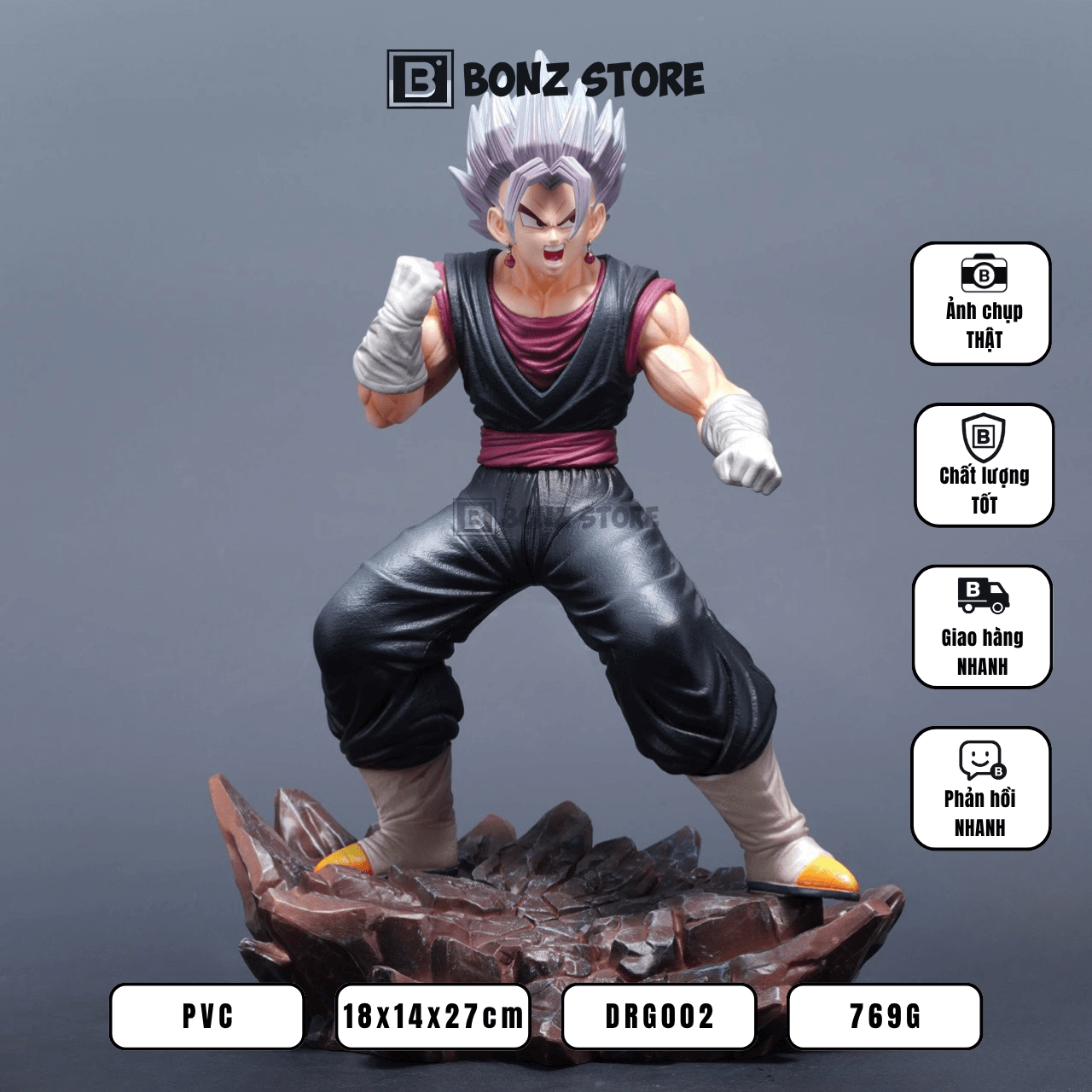 - Tên nhân vật: Mô hình Dragon Ball – Vegito Super Saiyan 27cm (Tím) – Figure PVC DRG001.